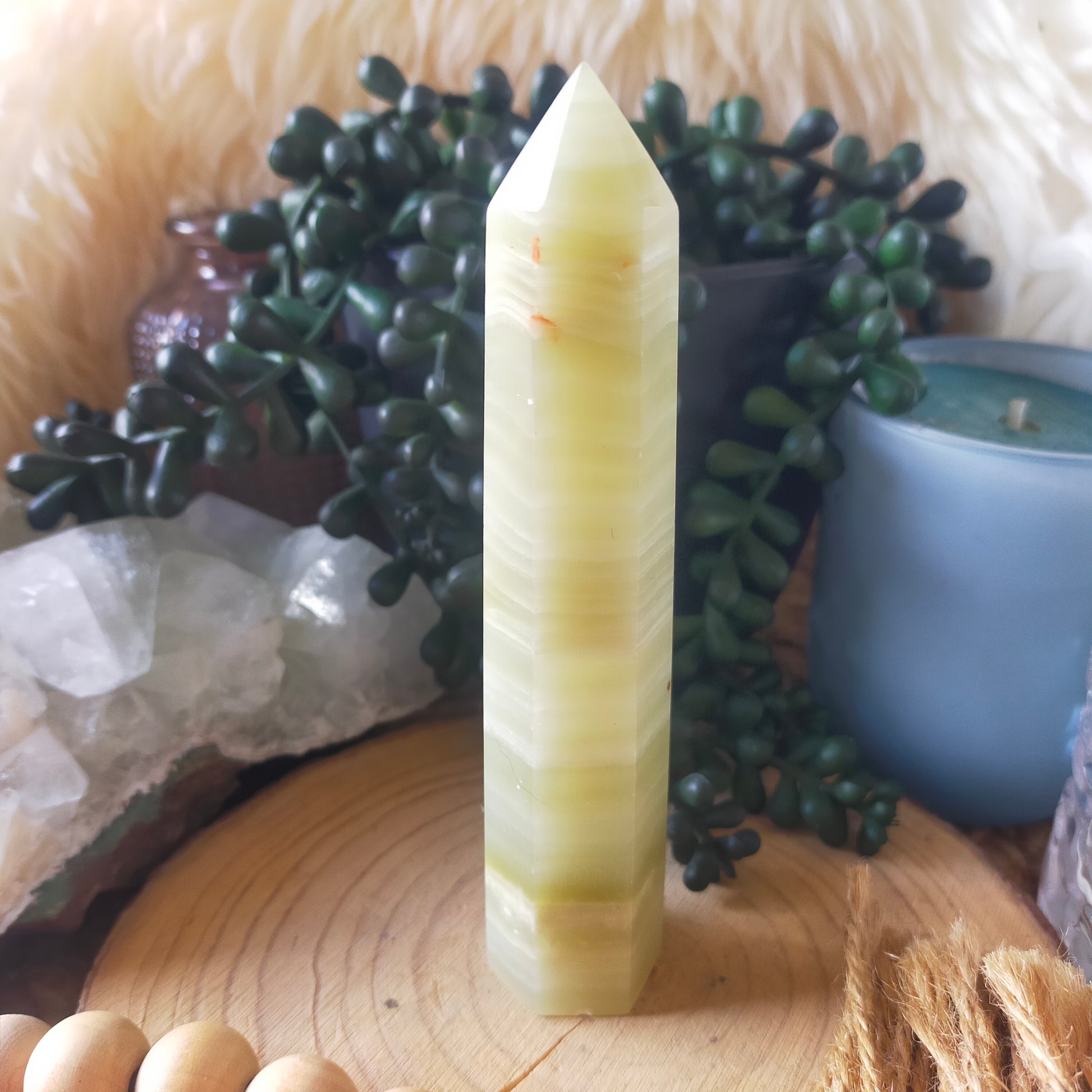 Gorgeous lime green banded calcite point 💚✨