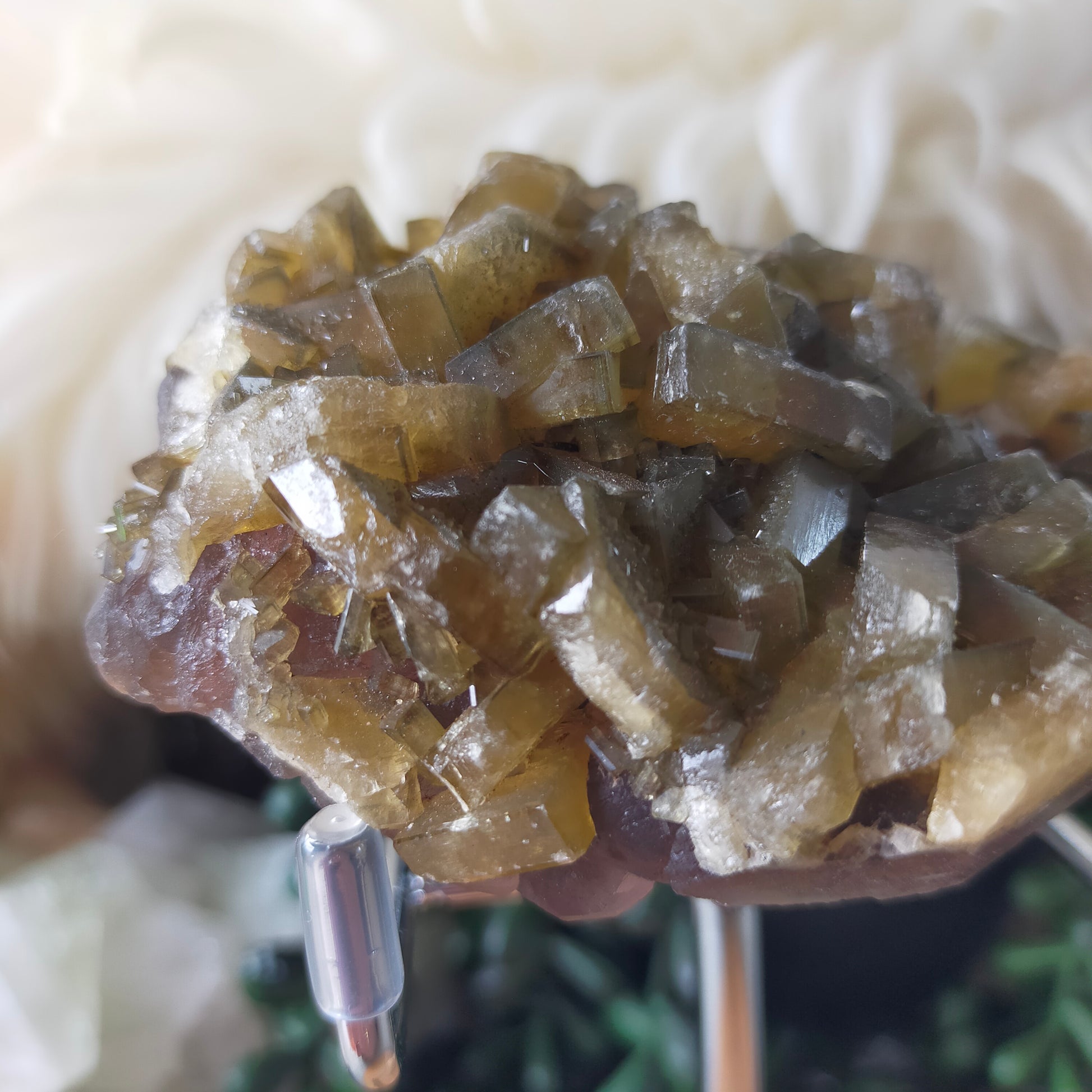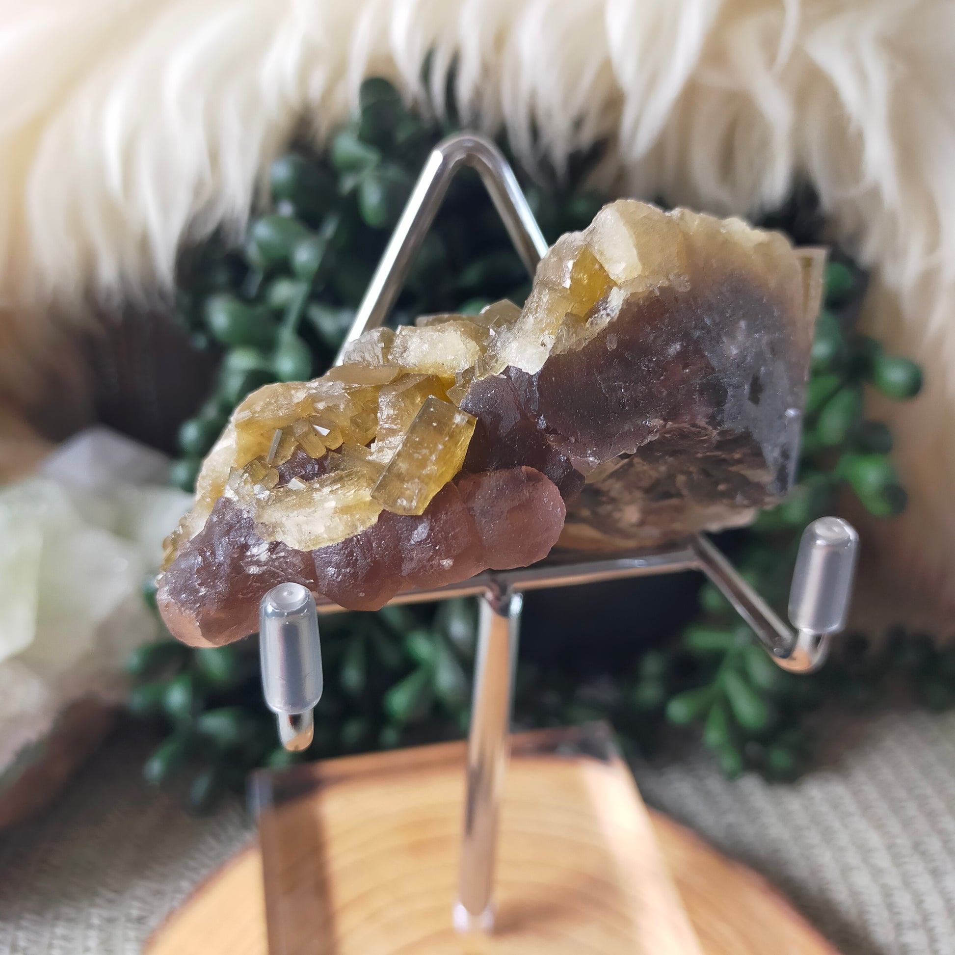 Gorgeous sparkly golden barite crystals on a bed of purple fluorite ππβ¨