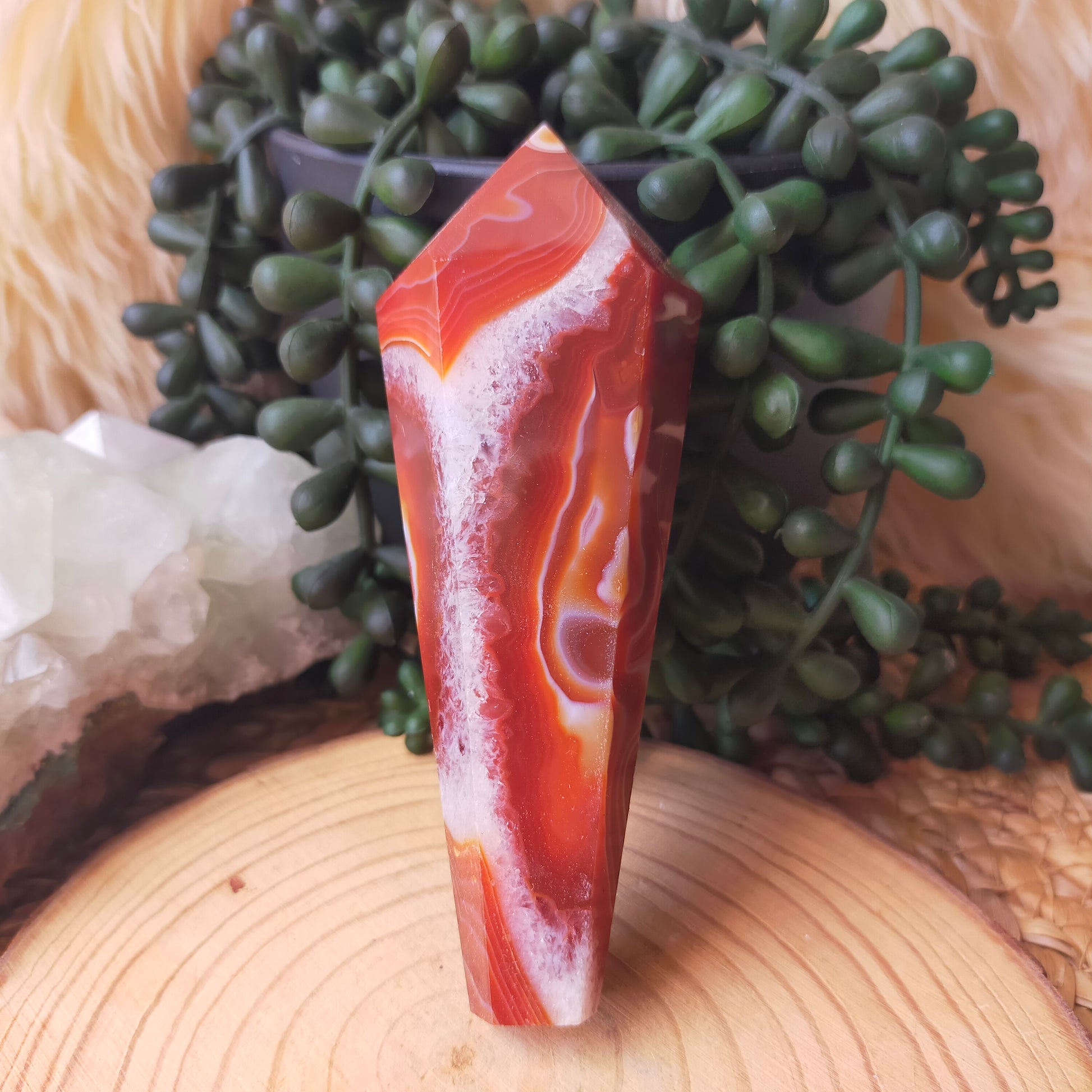 Stunning Carnelian Wand with beautiful colour, patterns and quartz inclusions ❤️🧡✨