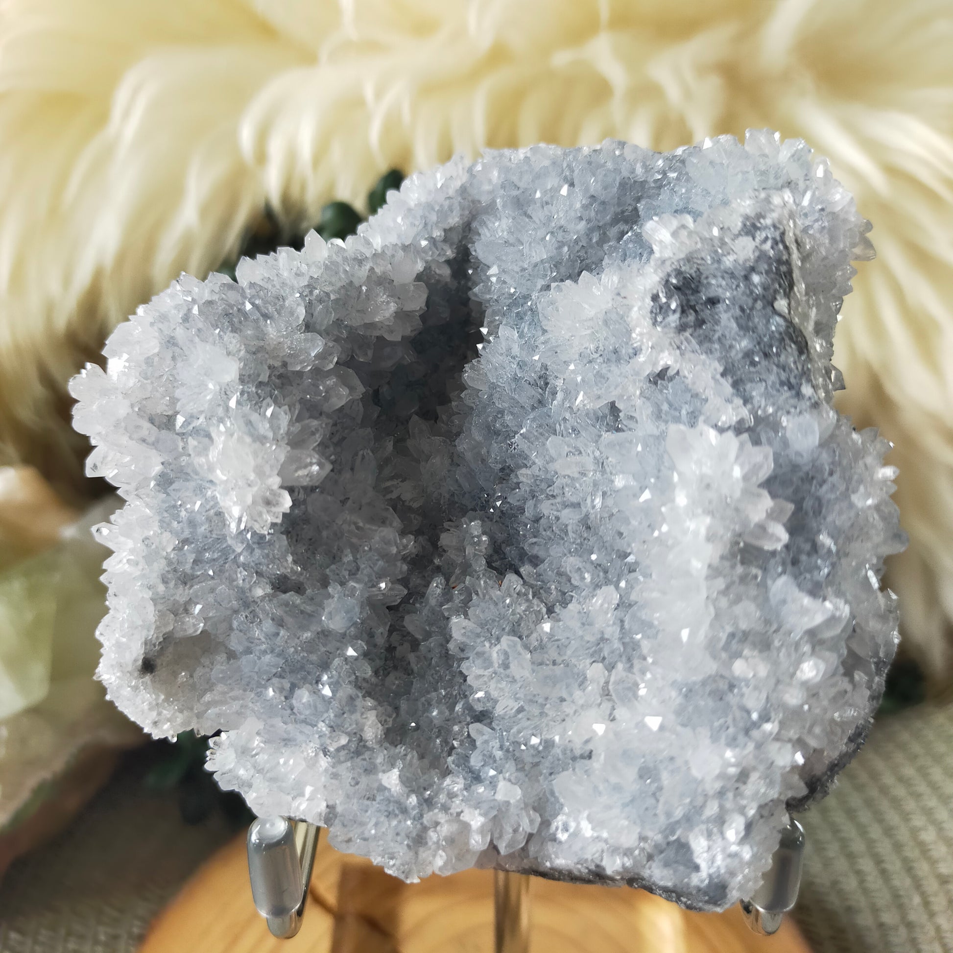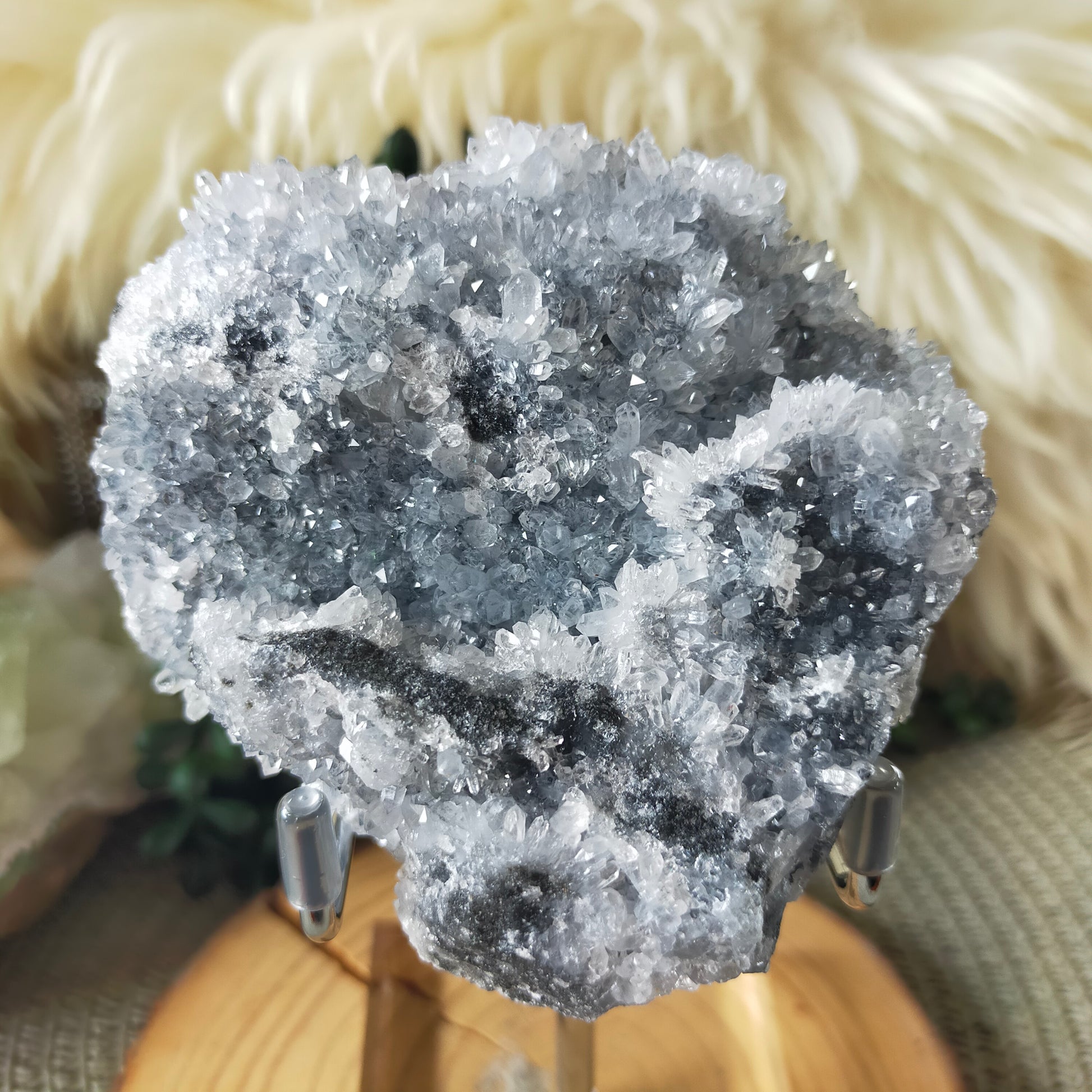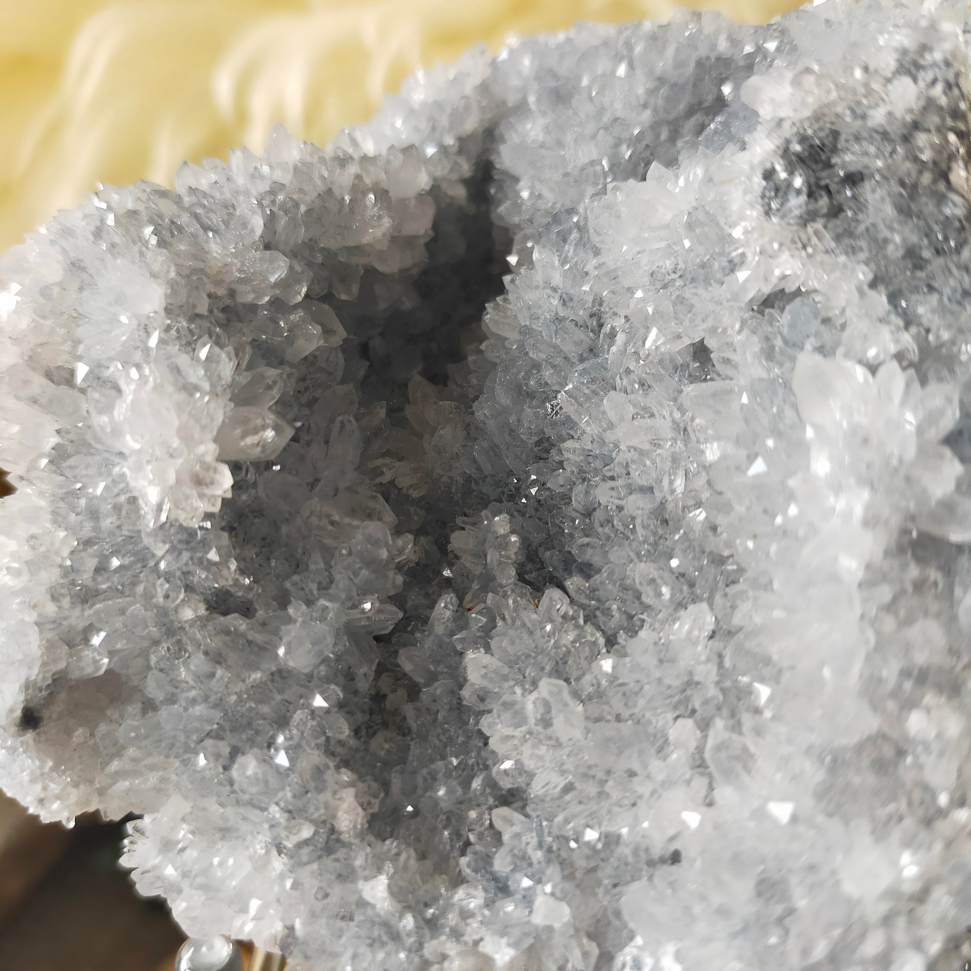 Gorgeous chrysanthemum quartz cluster with beautiful flower formations and sparkly quartz on both sides 🤍✨
