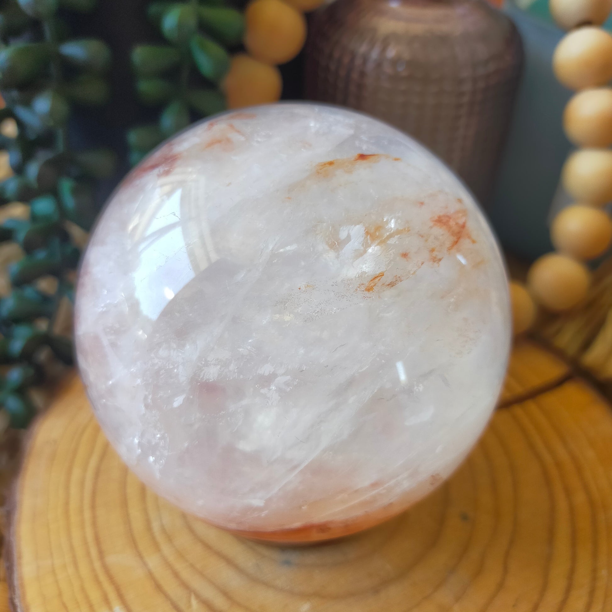 Stunning fire quartz sphere with gorgeous flashes and rainbows 🔥✨