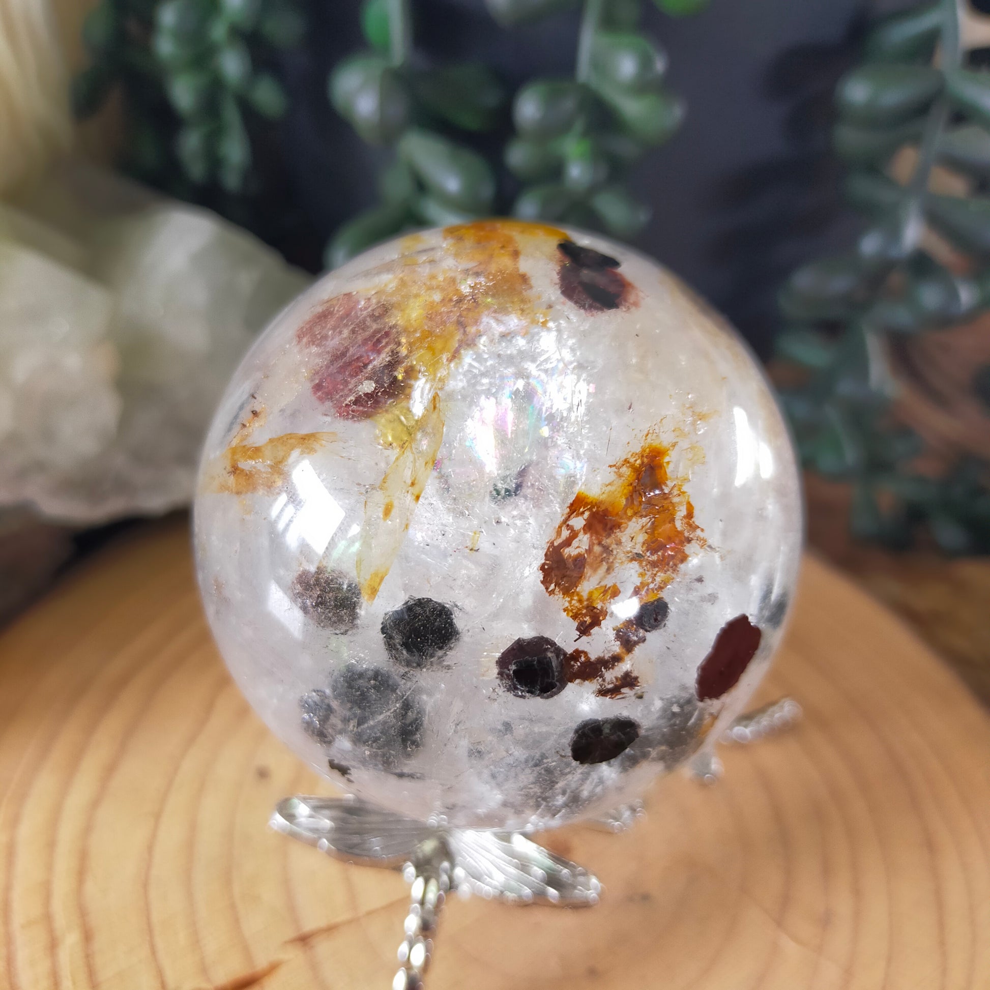 Amazing garden quartz sphere with many different inclusions and stunning rainbows šāØ A very unique piece!