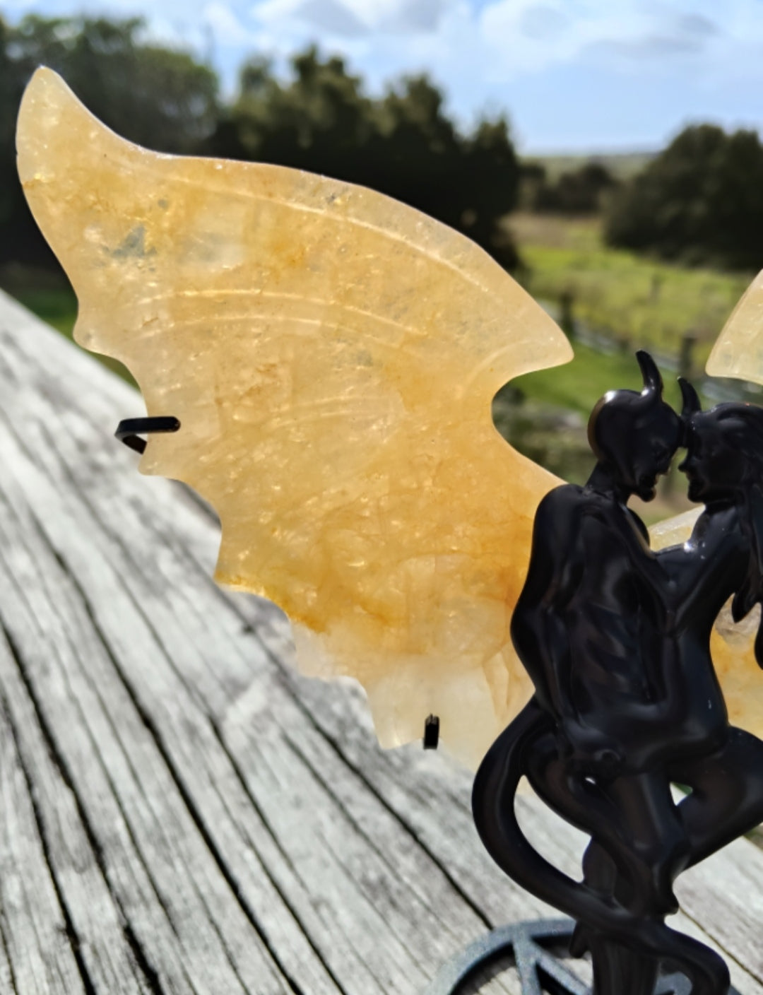 This is a five piece set that includes two golden healer wings, the angel/devil attachment, a base and a stand 😊