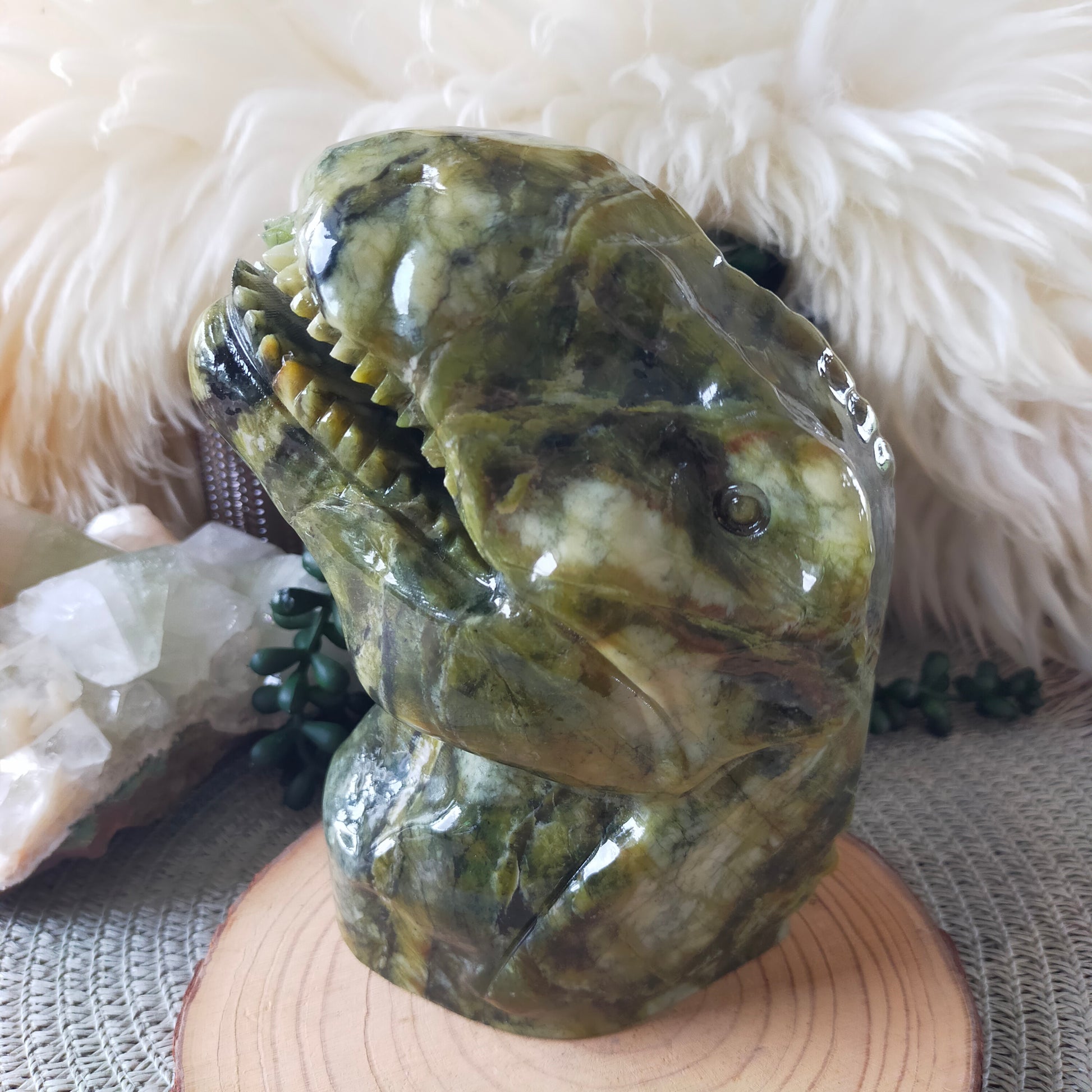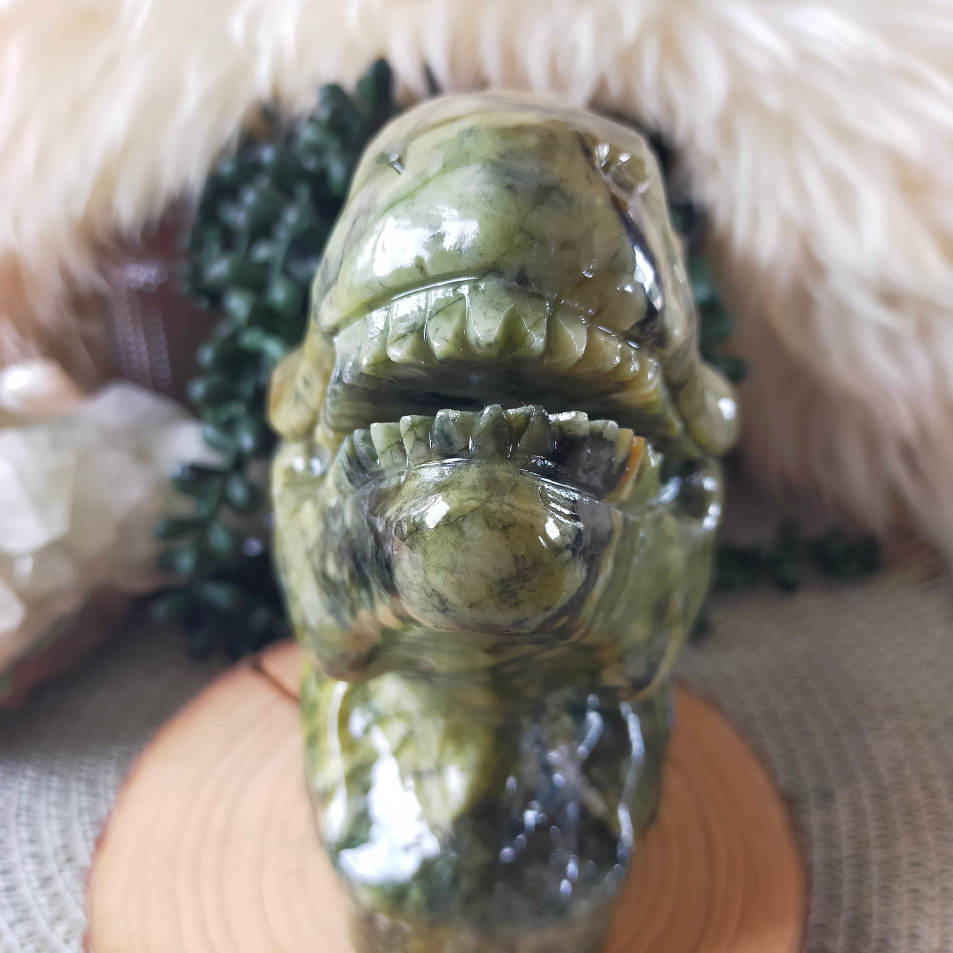 Beautifully carved and polished green Jade T-Rex Head 💚✨