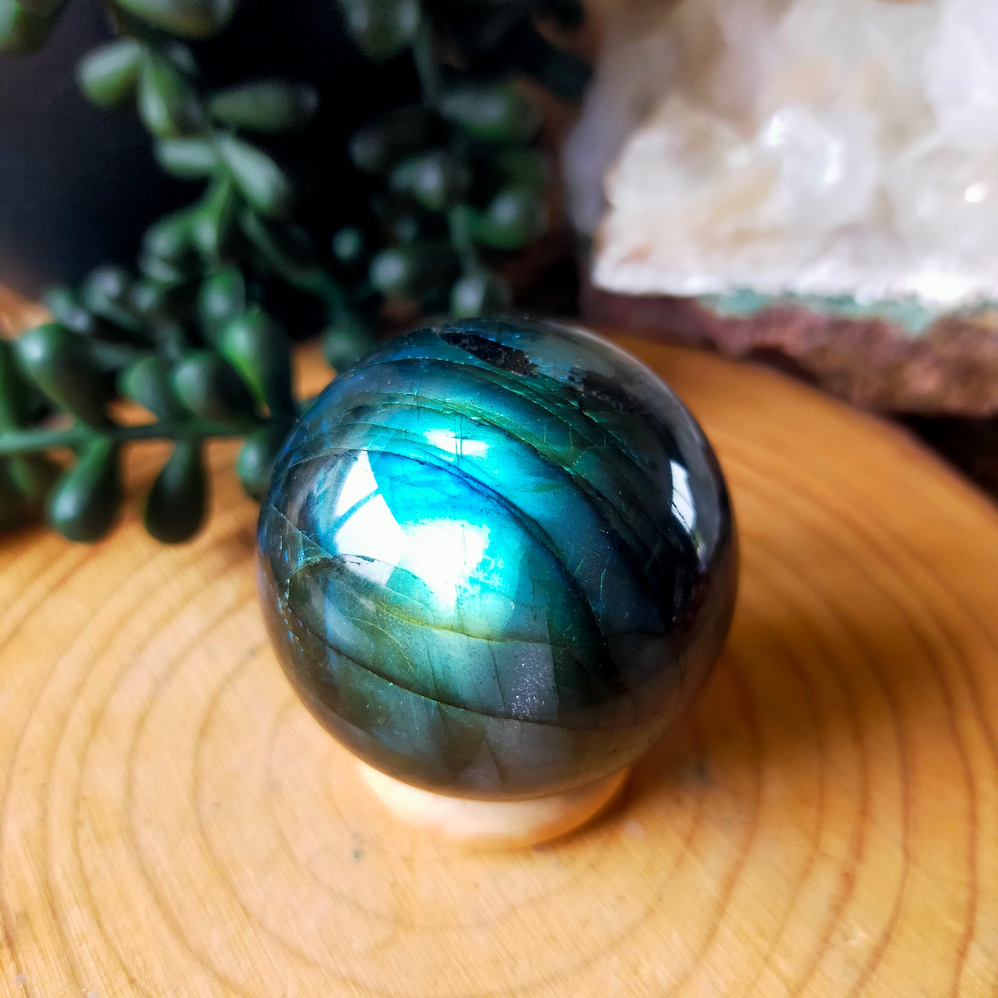 Beautiful labradorite sphere with amazing flashes on both sides 💙💚✨