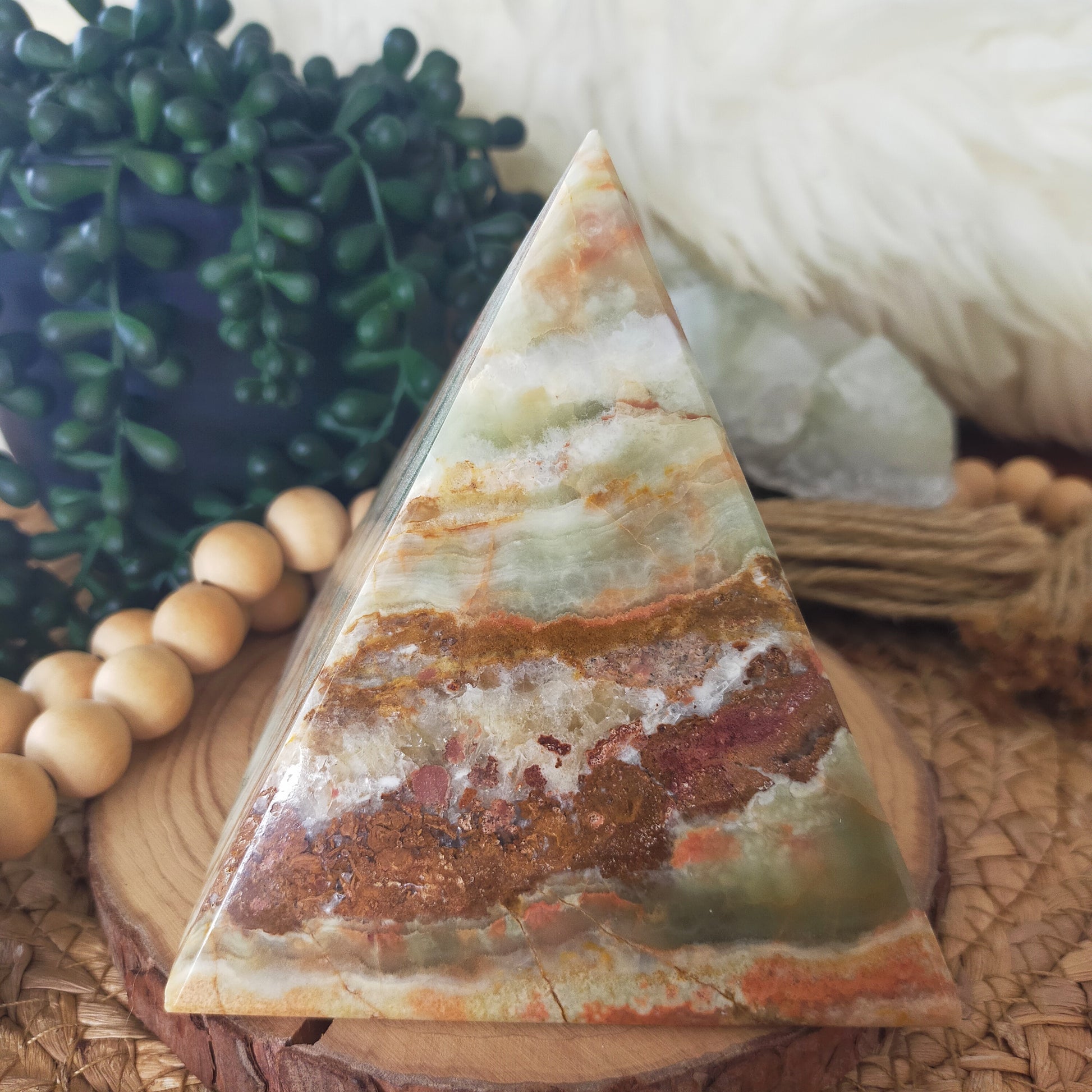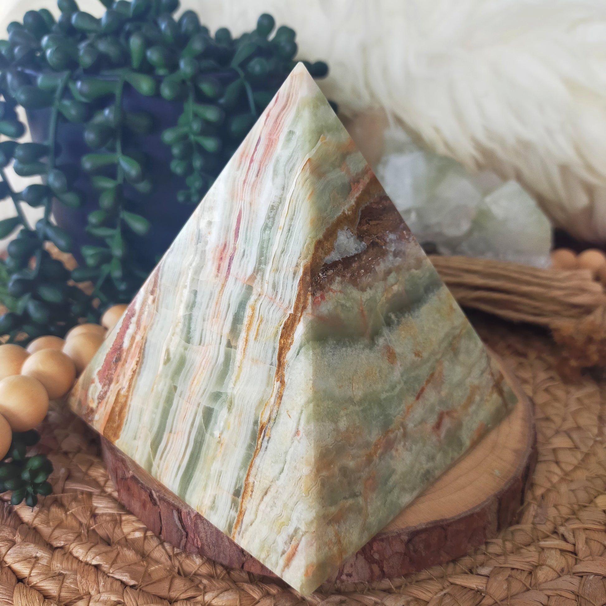 Large banded calcite pyramid with gorgeous patterns 💚✨