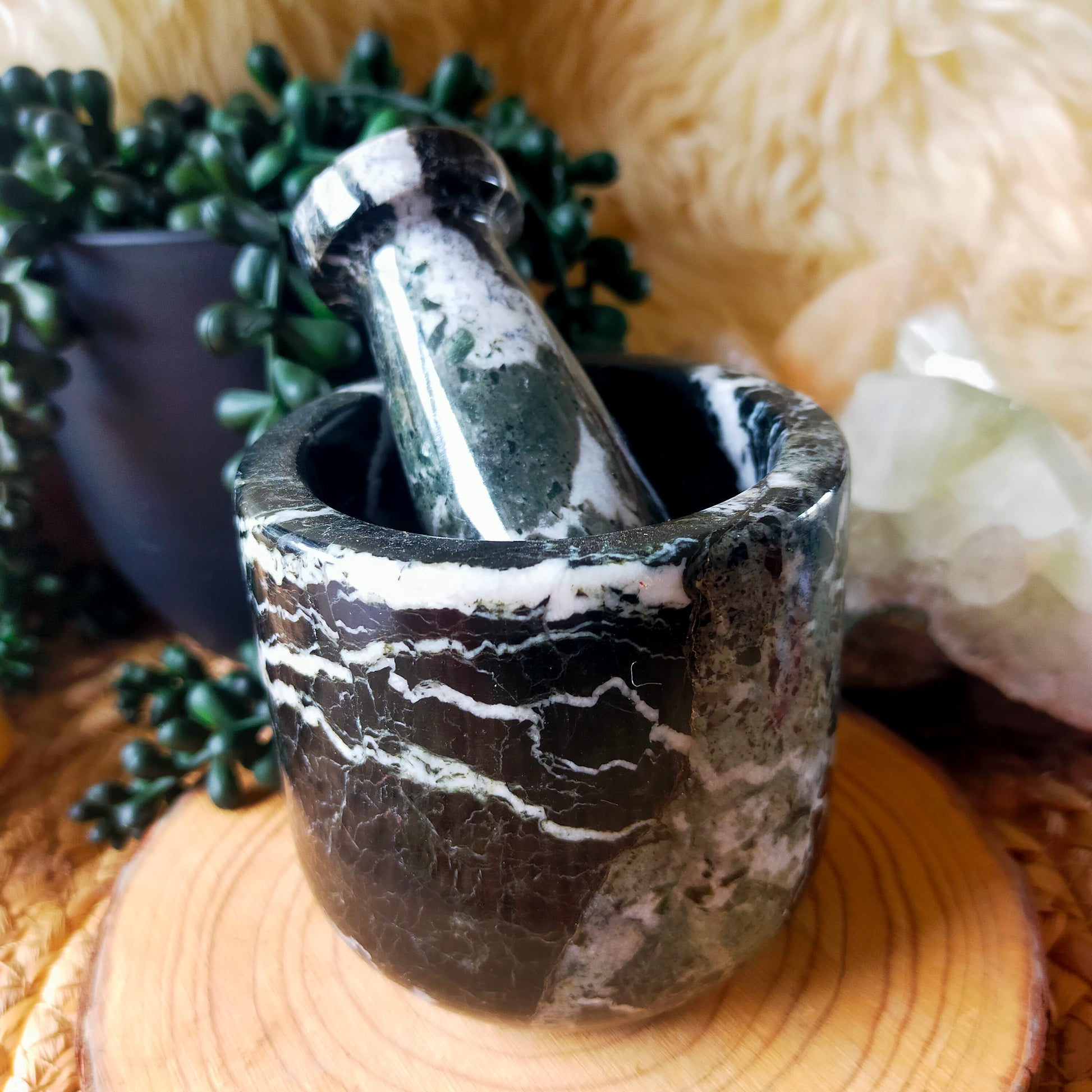 Small marble Mortar and Pestle, perfect for grinding herbs and salts for cooking and spell work 🖤🤍✨