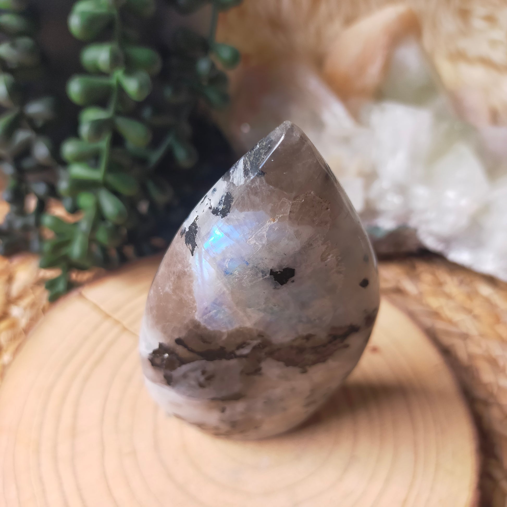 Gorgeous Rainbow Moonstone Teardrop, jam packed with stunning flashes 💙🤍🖤✨