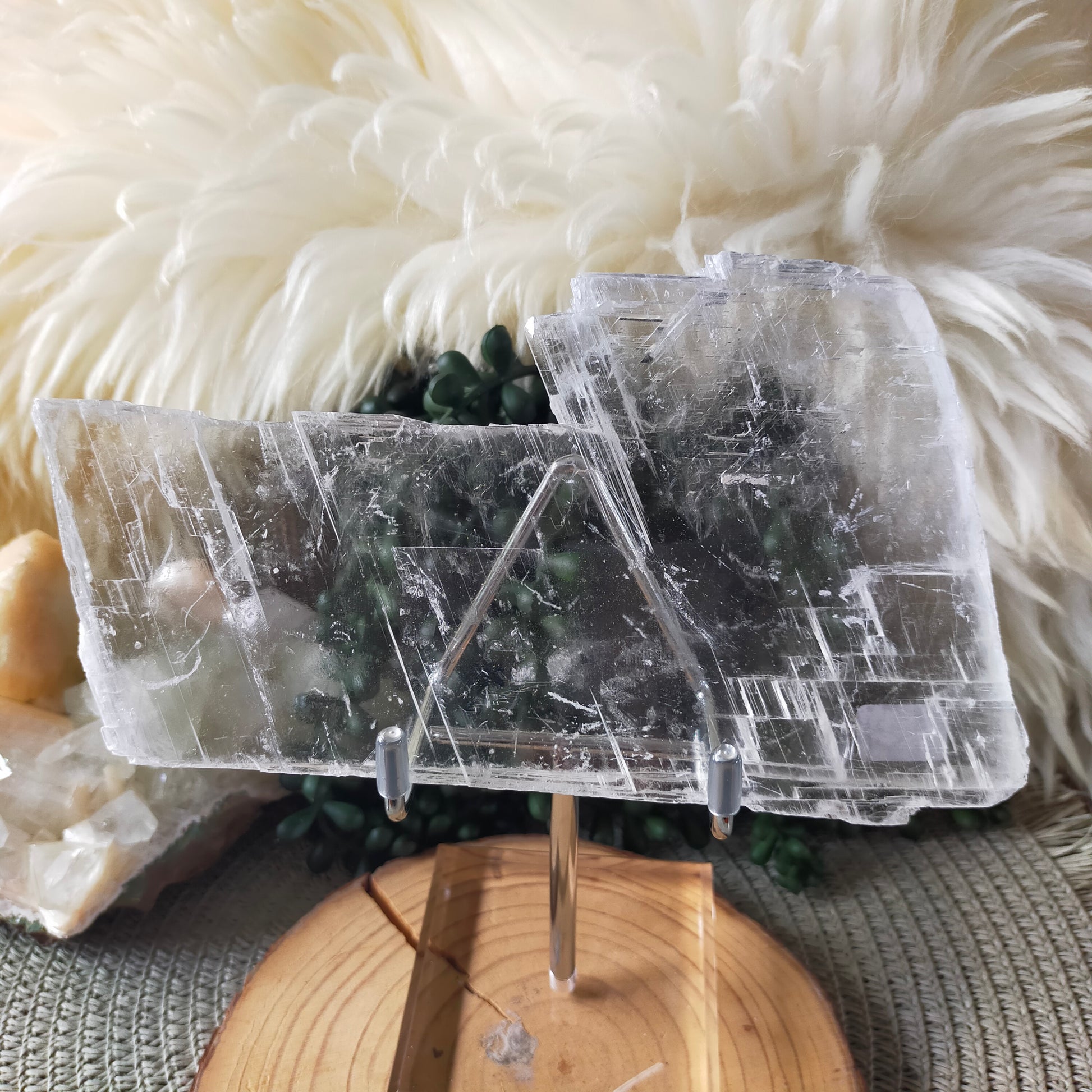 Gorgeous Selenite Plates in various sizes 🤍✨ These are perfect for cleansing and charging your other crystals, they also look beautiful on display 💫There is one photo of each piece ❤️ Acrylic stands sold separately ☺️