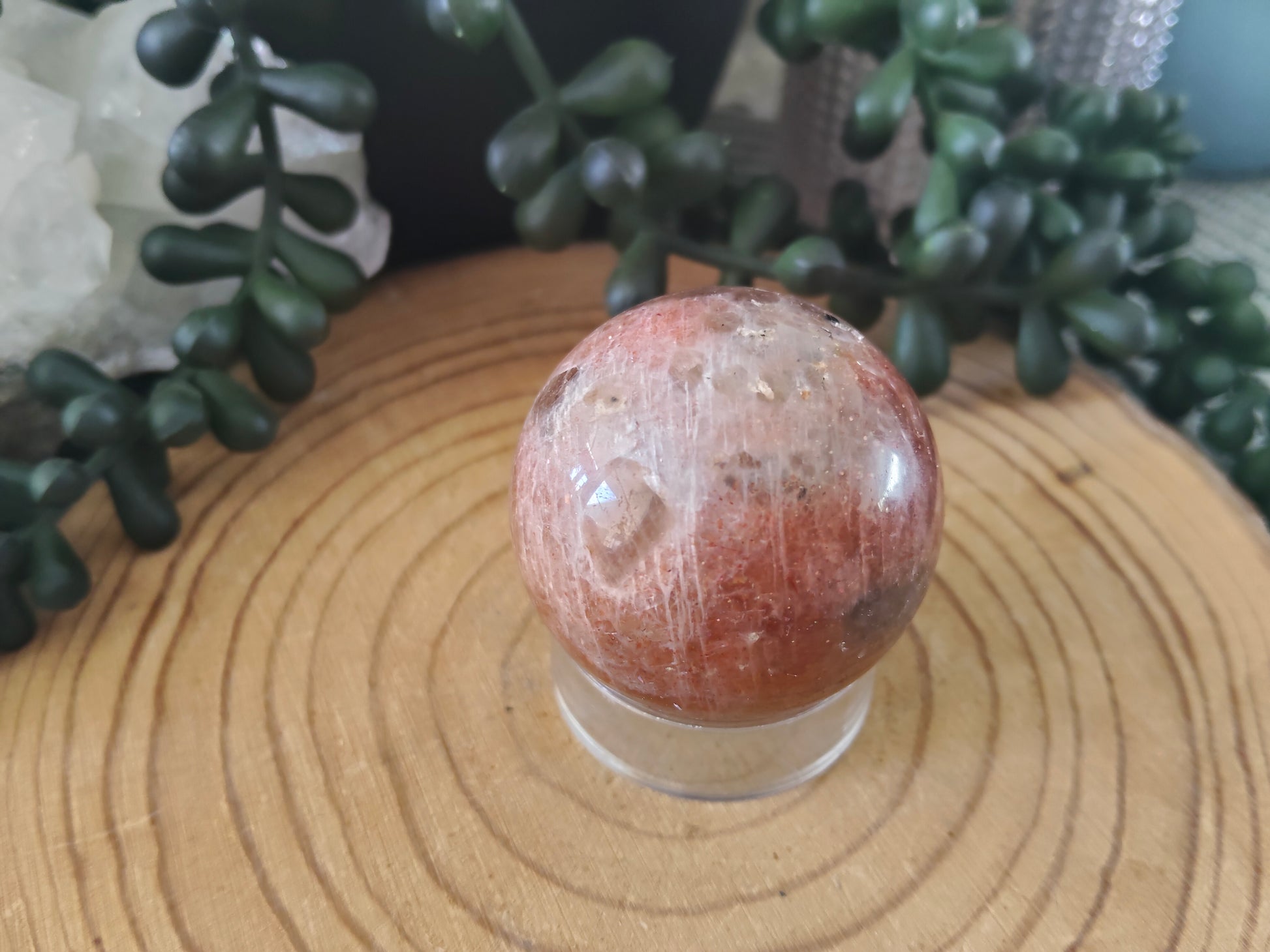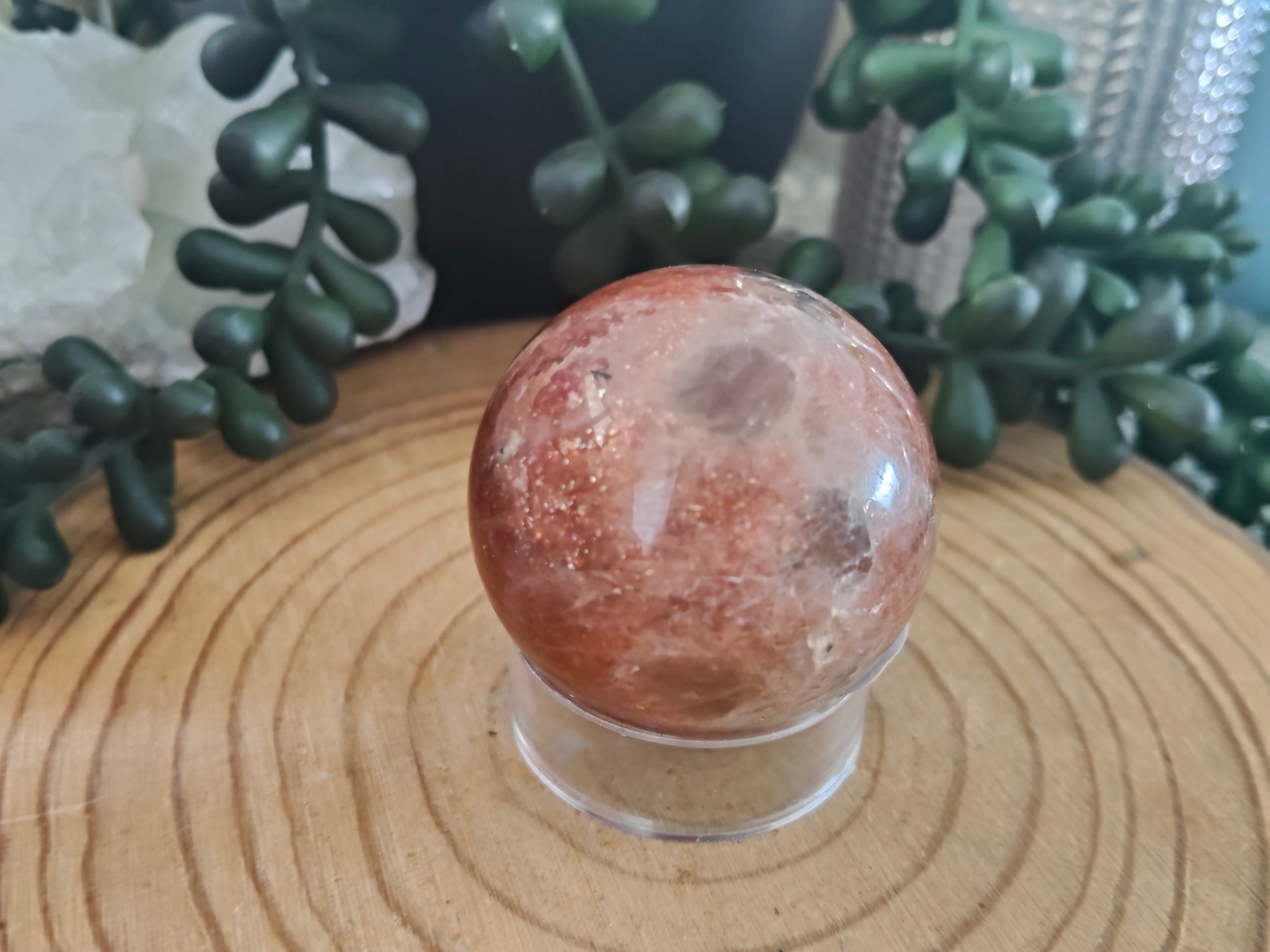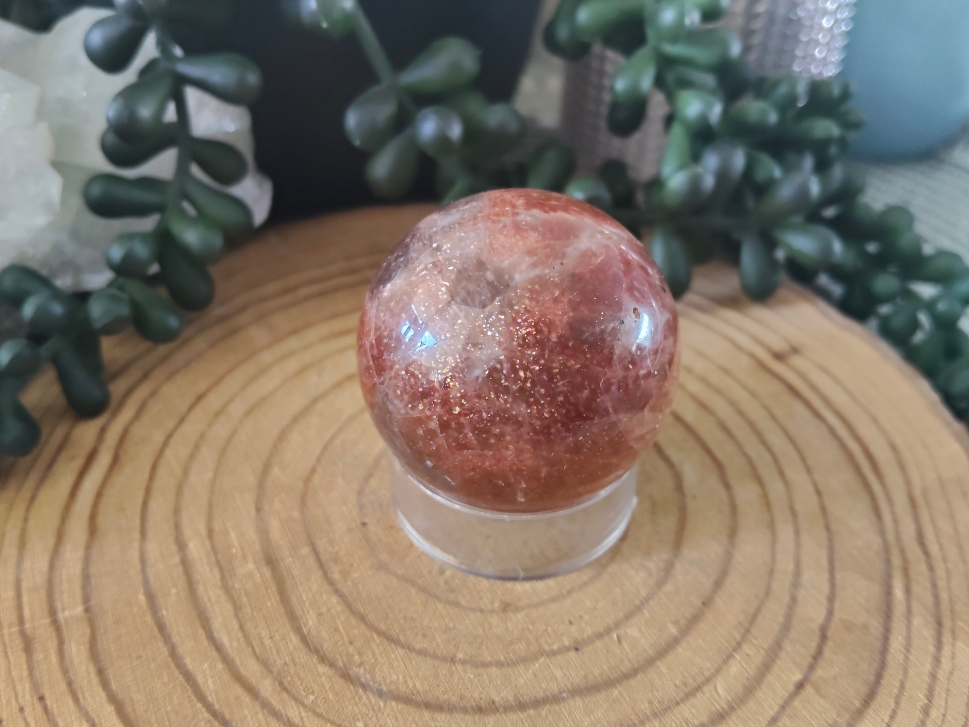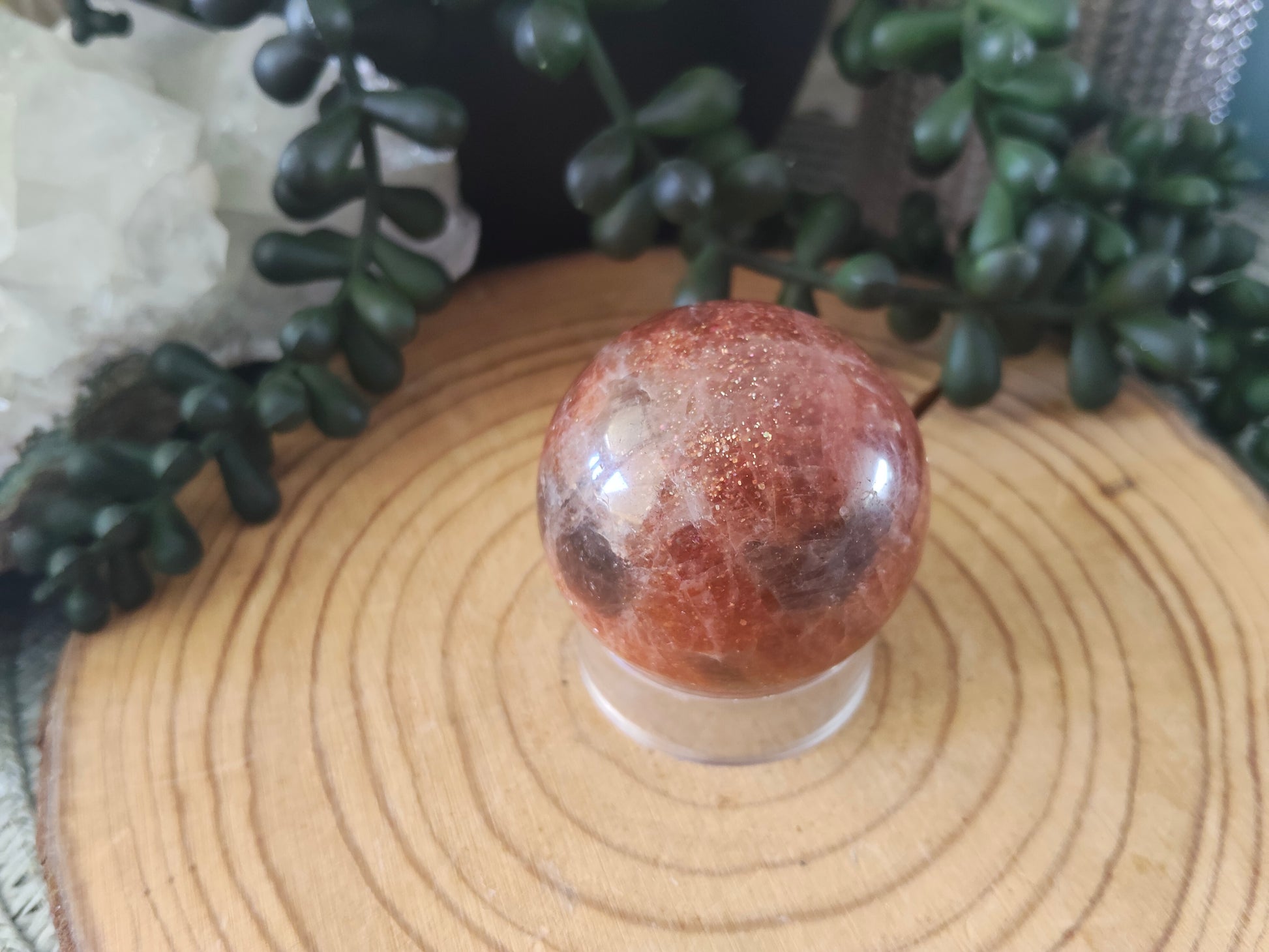 Beautiful sunstone sphere with stunning glittery flash all over and some white moonstone flash also 🧡 ✨Â