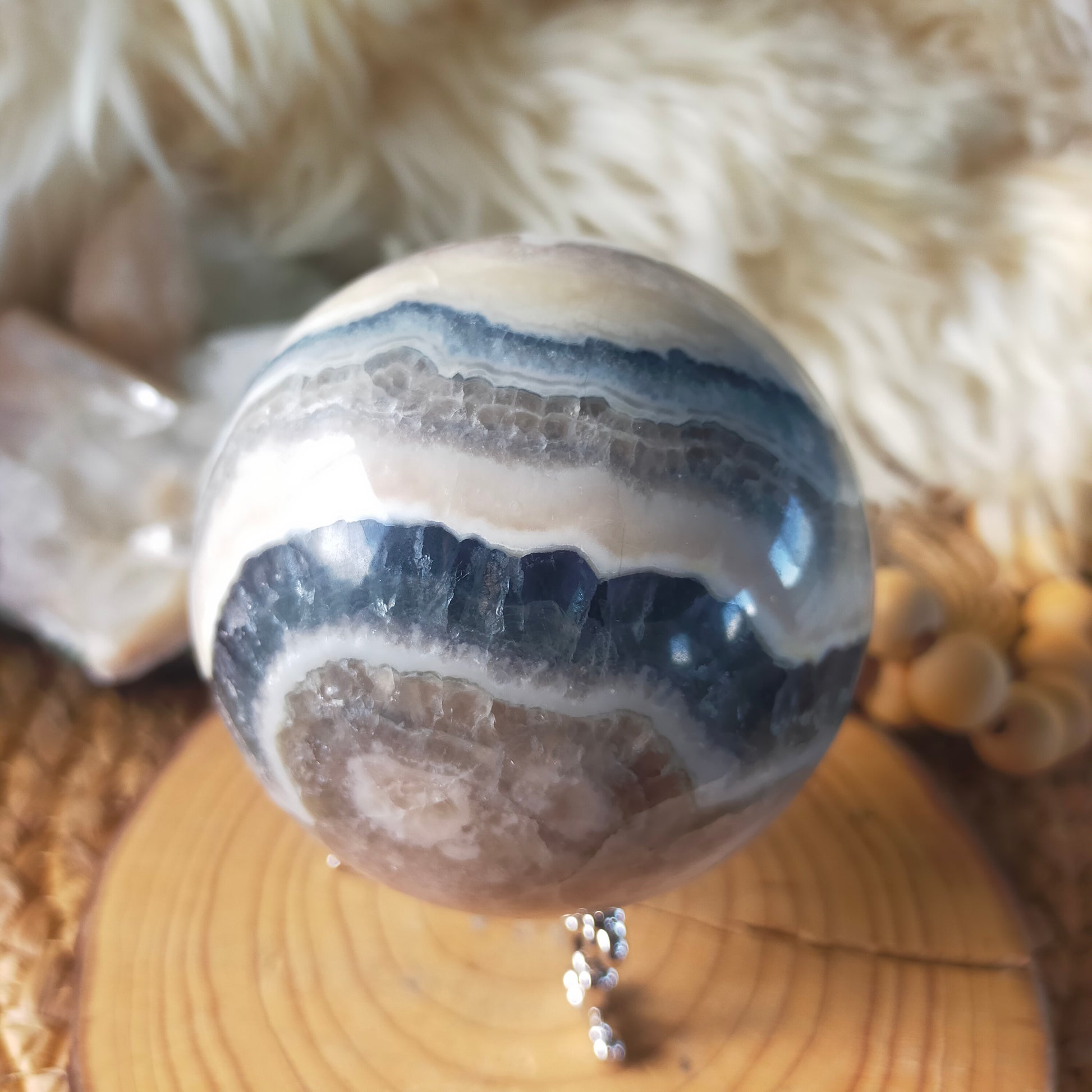 Stunning Large Fluorite Sphere 💚🤍 The colour is more green to the naked eye but shows up blue on the camera ✨ Such a stunning unique piece 💫