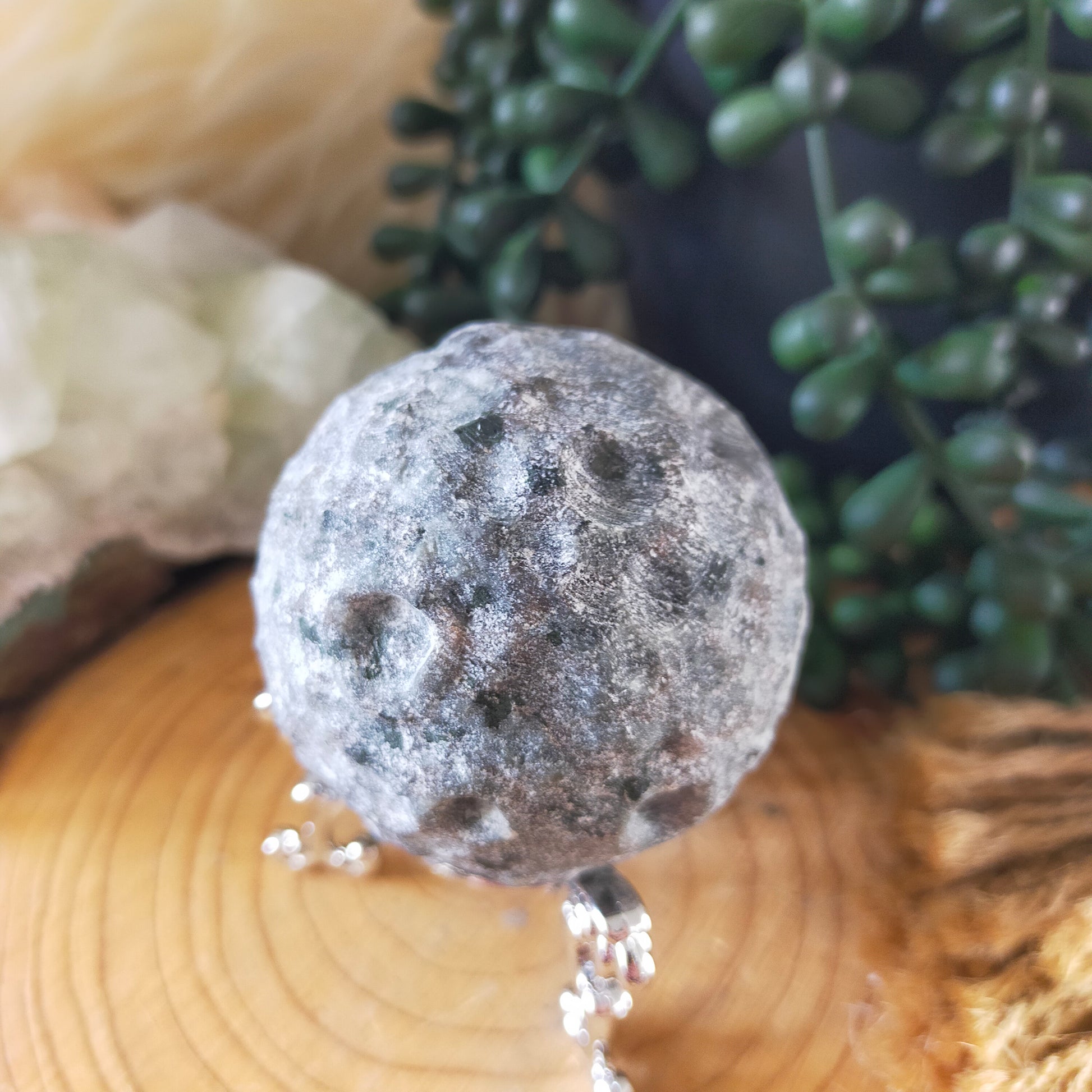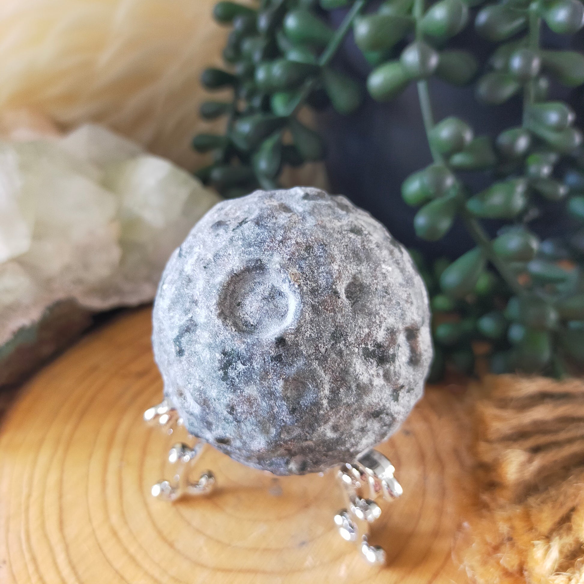 Cute carved yooperlite moon sphere with cool orange reaction under a UV light ✨